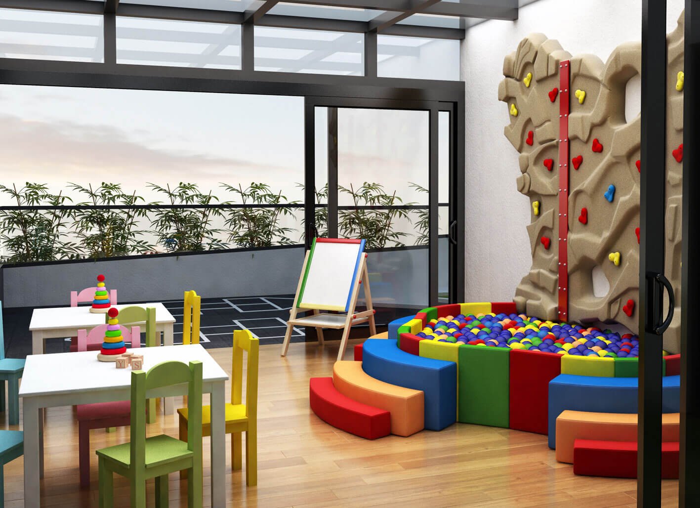 Los más pequeños disfrutarán de un espacio divertido y seguro, totalmente equipado para que sus días sean muy agradables y al mismo tiempo aprendan, mientras te relajas confortablemente en cualquier ambiente de la terraza.