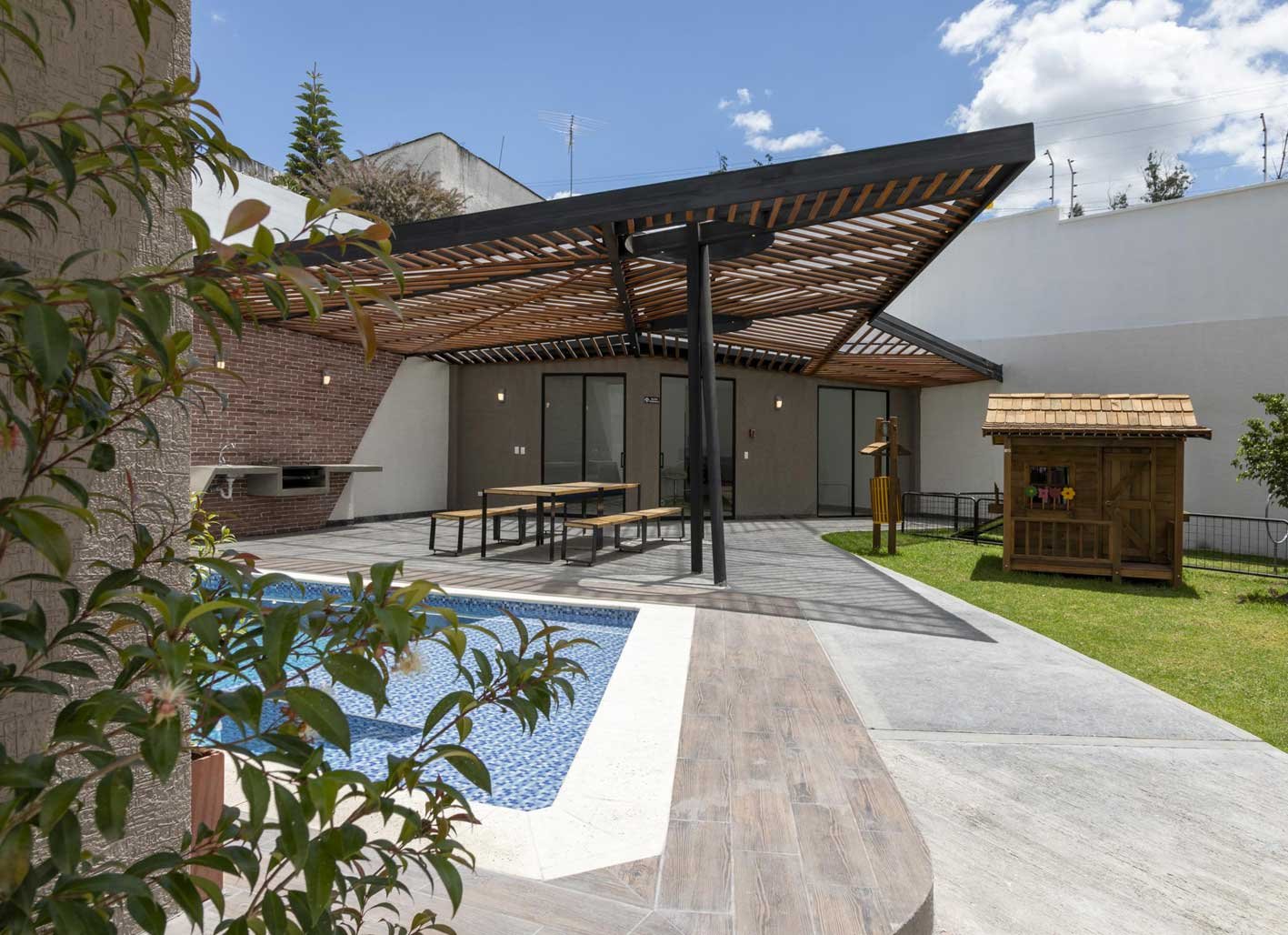 Que sea un buen pretexto el reunir a tus familiares y amigos en torno a una parrilla y un buen asado. El área de BBQ en Volterra completamente amoblada y con una pérgola para disfrutar con tranquilidad en un día de sol.